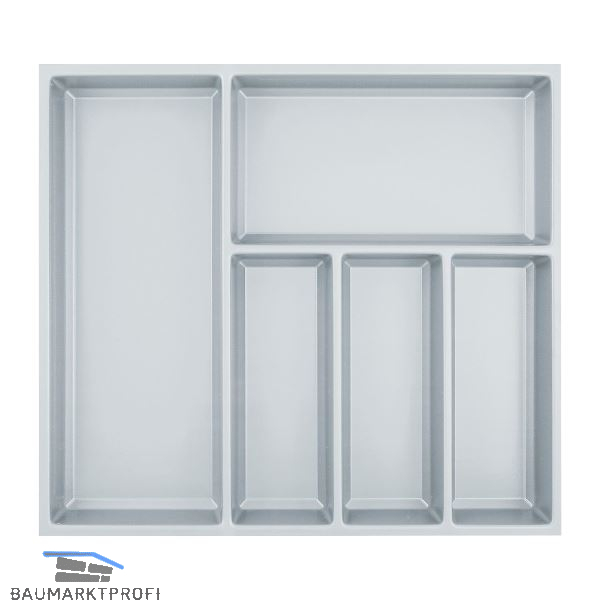 Marke: Agoform Type: Sky passend zu: Blum Legrabox NL 500 mm Korpusbreite (mm): 600 B x H x T (mm): 520 x 53 x 473 Material: Kunststoff Farbe: Silbergrau Oberfläche: genarbt