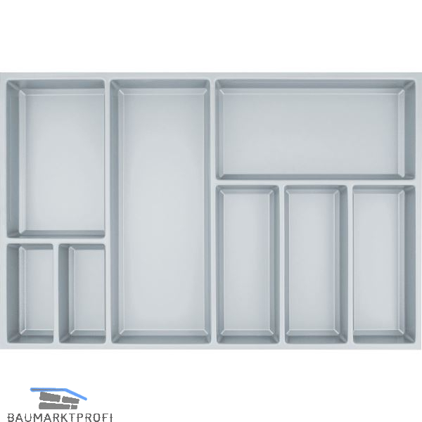 Marke: Agoform Type: Sky passend zu: Blum Legrabox NL 500 mm Korpusbreite (mm): 800 B x H x T (mm): 720 x 53 x 473 Material: Kunststoff Farbe: Silbergrau Oberfläche: genarbt