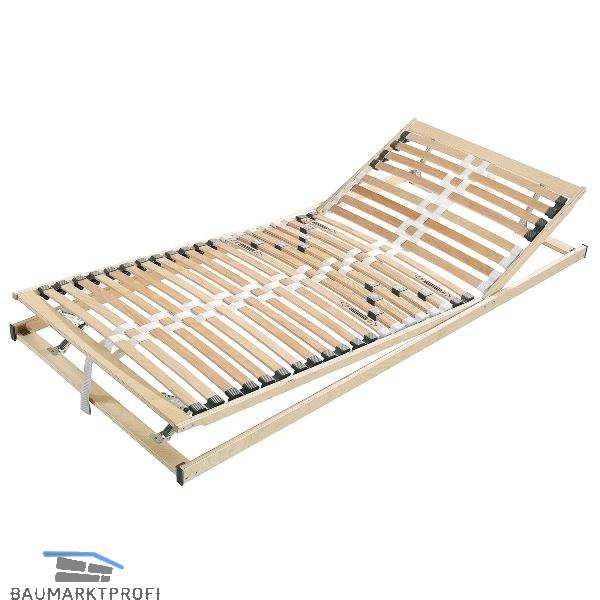 • 14 Doppellattenelemente gelagert in beweglichen Kautschukkappen und mehrfach verleimte, beharzte Schichtholzfederleisten.