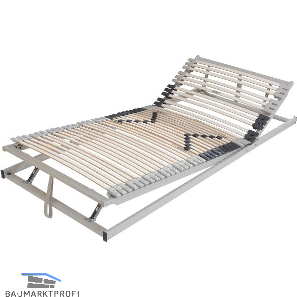 - 14 Tri-Latt-Elemente (42 Federleisten) gelagert in beweglichen Kautschukkappen und mehrfach verleimte, folierte Schichtholzfederleisten.