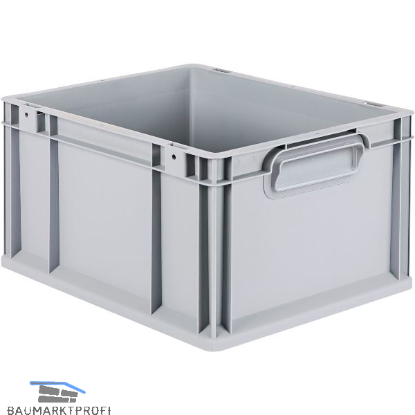 Eurobehälter mit geschlossenen Griff. Ökonomische Eurobox mit umlaufendem Behälterrand für hohe Stabilität. Boxen sind übereinander stapelbar und bieten somit eine platzsparende und flexible Regallösung. Durch die Euromaßlichkeit werden logistische Vorteile optimal genutzt. Umlaufender Rand wirkt verriegelnd u. selbstzentrierend, stapelbar. Durch glatte Innenwände optimale Reinigung möglich.