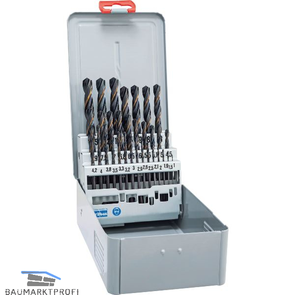Universeller Spiralbohrer, hohe Elastizität. Sehr gut geeignet für den Einsatz in Handbohrmaschinen, zum Bearbeiten von legierten und unlegierten Stählen. Höchste Zähigkeit und Verwindungssteifigkeit. Scharfe Schneiden auch bei größeren Durchmessern wenig Vorschubkraft erforderlich. 30% schneller und 3 x längere Standzeit durch partielle Härtung der Spannutlänge. ø um 0,5 mm steigend. In Stahlblechkassette. Inkl. Kernlochbohrer.