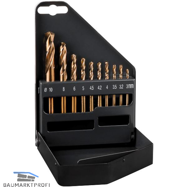 Inhalt: Bohrer ø 3, 3.2, 3.5, 4, 4.2, 4.5, 5, 6, 8, 10 mm