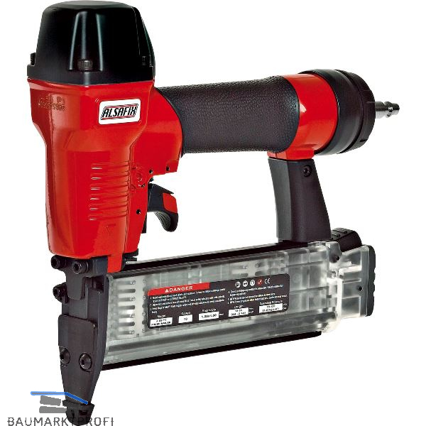 Geringes Gewicht, speziell geformter Nagelfuß für profilierte Materialien, gummierter Handgriff. Für Zierleisten, Profilleisten, Glasleisten, folierte Leisten.