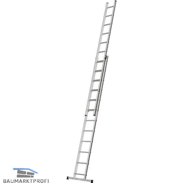 Leiterinnenbreite 294 mm (Oberteil), Holme aus nahtlosen Strangpressprofilen mit ergonomischer Form. Stabile Führungsbeschläge aus Stahl. Rutschsichere, bequeme, breite Sprossen mit 30 mm Sprossentiefe aus Walzprofil, Tragkraft 150 kg.