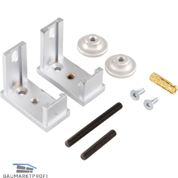 Befestigungsset zur Befestigung des Aluminiumprofiles an der Decke und am Boden.