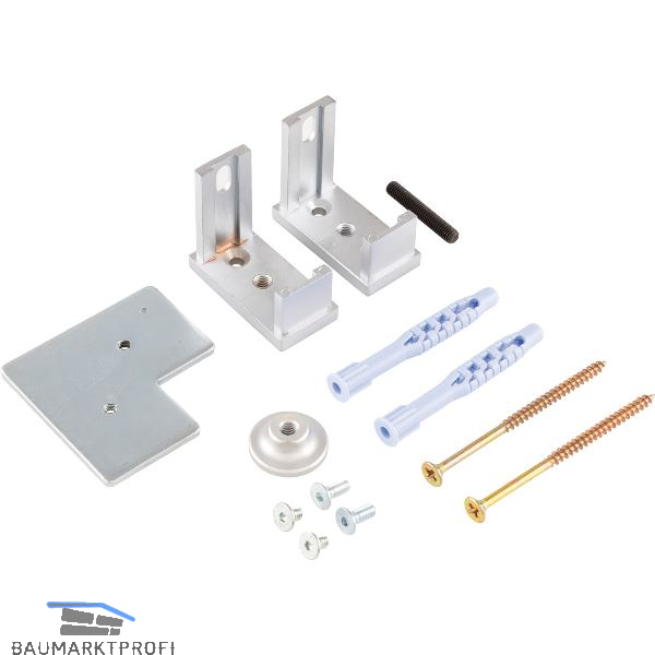 Befestigungsset zur Befestigung des Aluminiumprofiles an der Wand und am Boden.