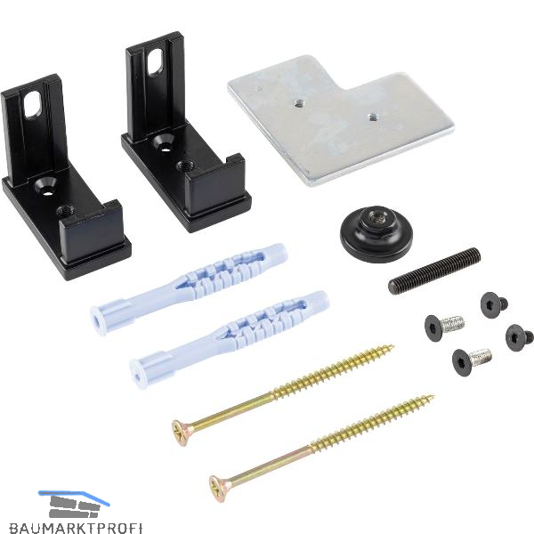 Befestigungsset zur Befestigung des Aluminiumprofiles an der Wand und am Boden.