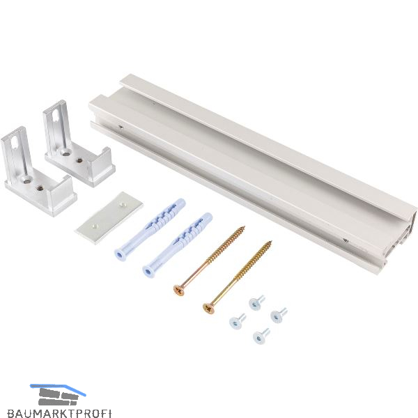 Die Querstrebe diet als Abstandhalter und wird zwischen Wand und senkrechtem Profil befestigt.