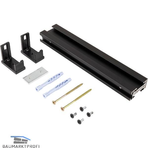 Die Querstrebe diet als Abstandhalter und wird zwischen Wand und senkrechtem Profil befestigt.