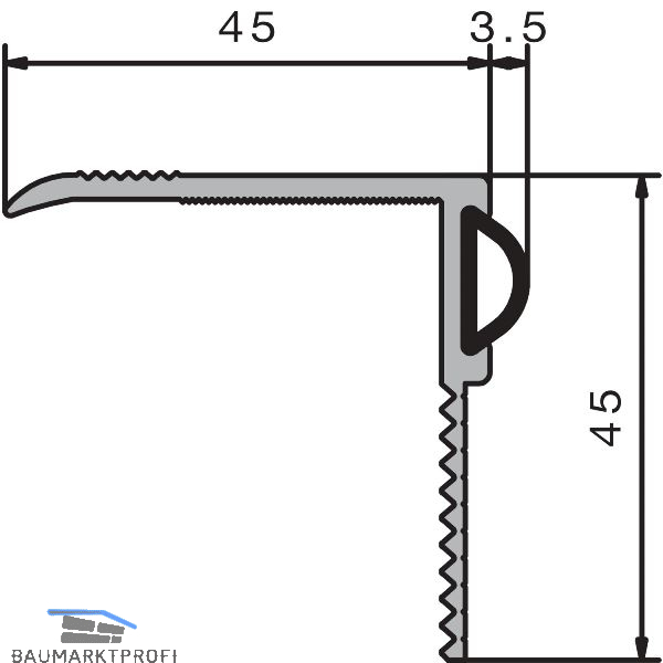 Gleichschenkeliger Schwellenwinkel aus Aluminium mit eingezogenem Dichtungsprofil aus witterungsbeständigem und kälteelastischem Silikonmaterial.