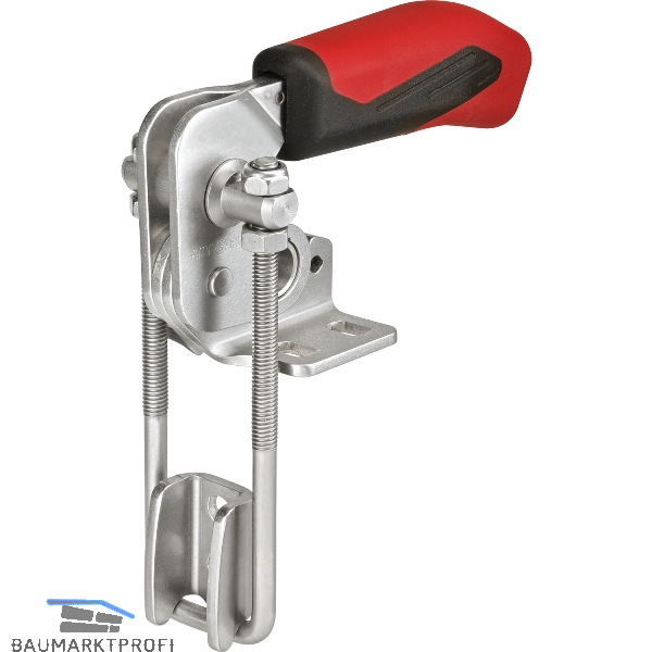 Verzinkt und passiviert. Niete aus rostfreiem Stahl, die in einsatzgehärteten Lagerbuchsen laufen. Haken vergütet, Lagerstellen gefettet. Mit ergonomischen ölbeständigen 2 K- Handgriff. Komplett mit Gegenhalter.