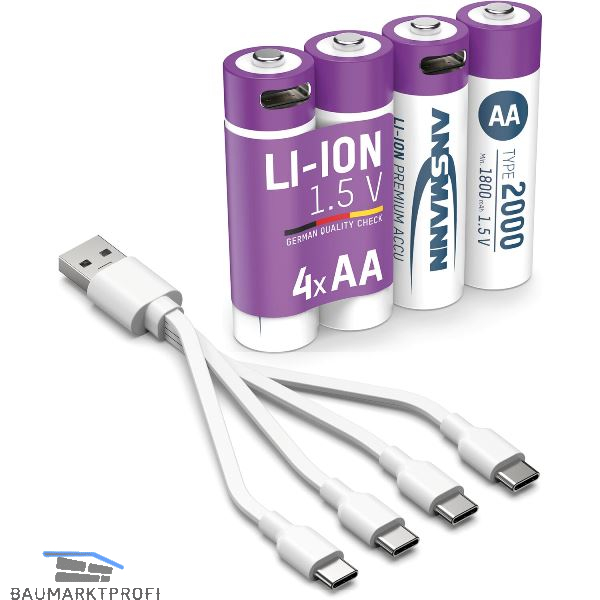 ANSMANN Batterie Akku mit Ladekabel LR6 AA 1,5 Volt 4 Stück