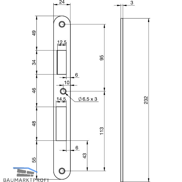 Abmessung (mm): 232 x 24 x 3