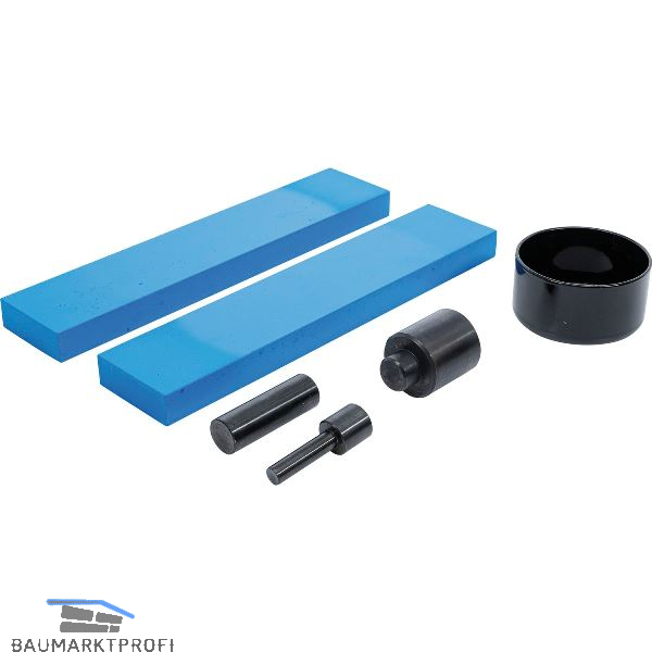 Zubehör-Satz für Werkstattpressen. Hilfreich beim Auspressen von Lagern, Bolzen, Buchsen, etc. Geeignet für Werkstattpressen bis 50 Tonnen.