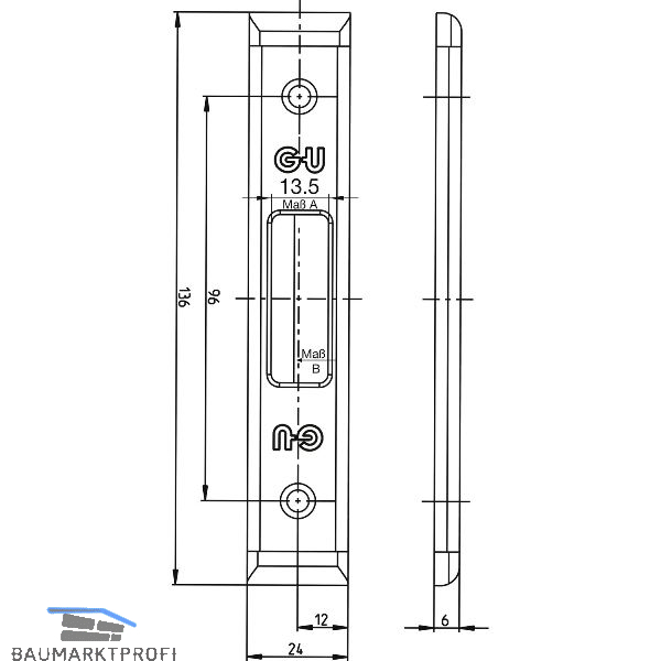 Länge mit Kunststoffteilen = 136 mm