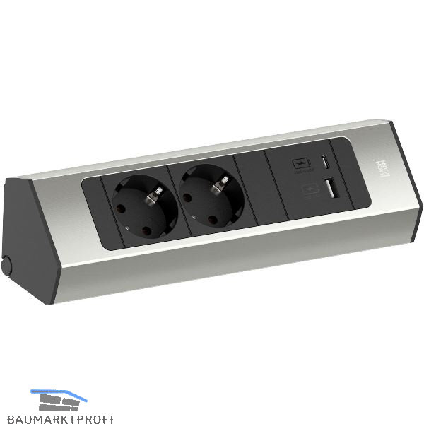 BACHMANN Steckdosenleiste Casia2 K 2-fach Schuko + USB A+C Charger Edelstahl