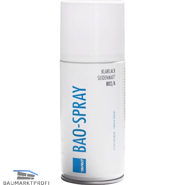 Bao-Spray 800 Klarlack ist lieferbar den Glanzgraden glänzend, seidenmatt, matt und stumpfmatt.