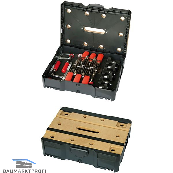 Multifunktionaler Systainer optimal für Montagetechniker, mit Holzeinlage inkl. 20-er Bohrung, 3 verschiedene Spannmöglichkeiten