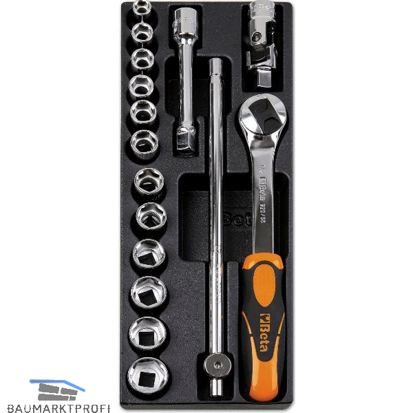 Ausstattung: Sechskantsteckschlüssel 1/2", 10, 12, 13, 14, 15, 16, 17, 18, 19, 21, 22, 24, Verlängerung 1/2" 125 mm,
