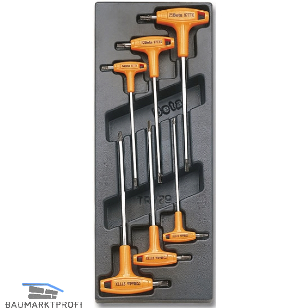 Ausstattung: Stiftschlüssel für Torx Schrauben mit Griff, T10, T15, T20, T25, T27, T30.