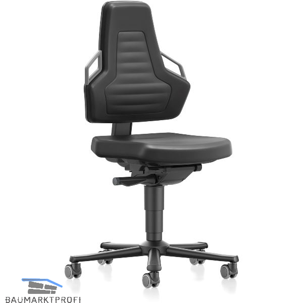 Ergonomisch geformte Rückenlehne mit robusten Funktionsgriffen und horizontaler Steppung, nach oben verjüngend. Rückenlehnenhöhenverstellung um 60 mm. Ergonomisch geformte Sitzfläche mit integrierter Fase an der Sitzkante. Integralschaum-Polster bietet höchste Widerstandsfähigkeit und Reinigungsfreundlichkeit. Extrem robust, langlebig, abwaschbar, desinfektionsmittelbeständig, PVC-frei, blut- und urinbeständig. Brandschutz nach EN 1021. Aus extrem stabilem Profilstahlrohr, pulverbeschichtet. Lastabhängig gebremste, weiche Doppelrollen für harte Böden. Sämtliche Materialien sind sortenrein recyclebar. Synchrontechnik mit automatischer Gewichtsregulierung, inkl. manueller Feinjustierung und Winkelbegrenzung in 3 Stufen. Sitzneigungsverstellung um 6° Sitztiefenverstellung um 60 mm. Aluminium Fußkreuz poliert.