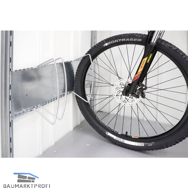 Optimales Abstellen von Fahrrädern durch verstellbare Klemmbügel. Das Biohort Fahrradständer-Set Bike Holder sorgt dafür, dass Sie 2 Fahrräder geschützt in einer Rolladenbox abstellen können. Das Set liefert alles nötige, um die Biohort StoreMax 190 Box in eine Fahrradgarage zu verwandeln. Der Fahrradständer kann schnell und auch nachträglich eingebaut werden und ermöglicht ein einfaches Fixieren der Räder für sicheren Halt. Die 2 Regalsteher zur Montage sind im Biohort Fahrradständer-Set Bike Holder enthalten.