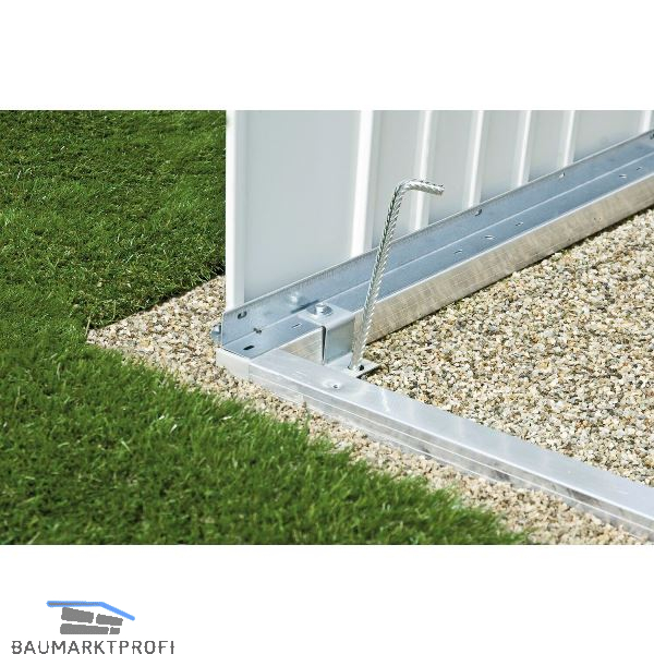 Er verleiht dem Biohort Gartenhaus auf unebenem Boden (z.B. Wiese) auch ohne Fundament die notwendige Stabilität. Der Alu-Bodenrahmen hat einen Querschnitt von 40 x 40 mm.