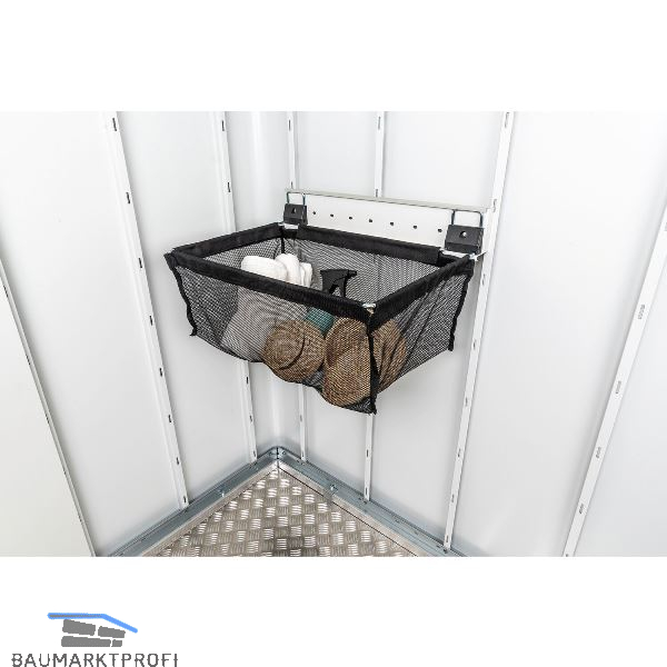 Ideal zum Aufbewahren von Kleinteilen, inkl. Wandschiene zum Einhängen in die Wand. Sack aus schwarzem Polyestergeflecht. Größe (B x T x H): 55 x 34 x 20 cm
