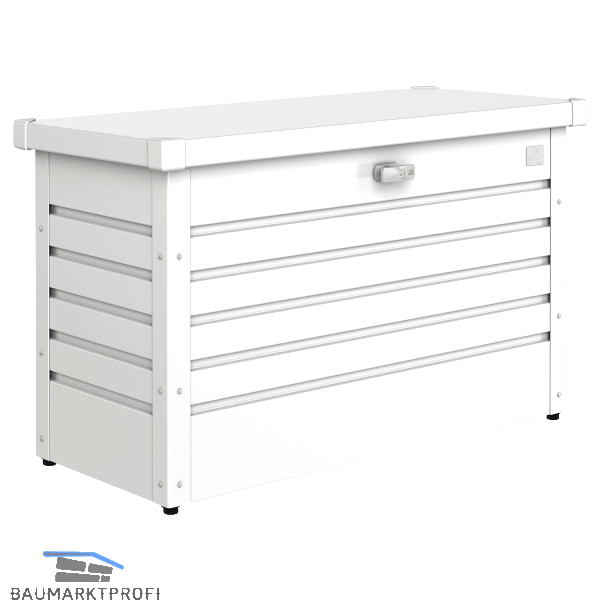 Marke: Biohort Farbe: Weiß Volumen (l): 195 Außenmaß (mm): 1010 x 460 x 610 Innenmaß (mm): 920 x 375 x 560 Gewicht (kg): 17 Grundausstattung: Gasdruckfeder, Drehgriff-Zylinderschloss Type: FreizeitBox 100