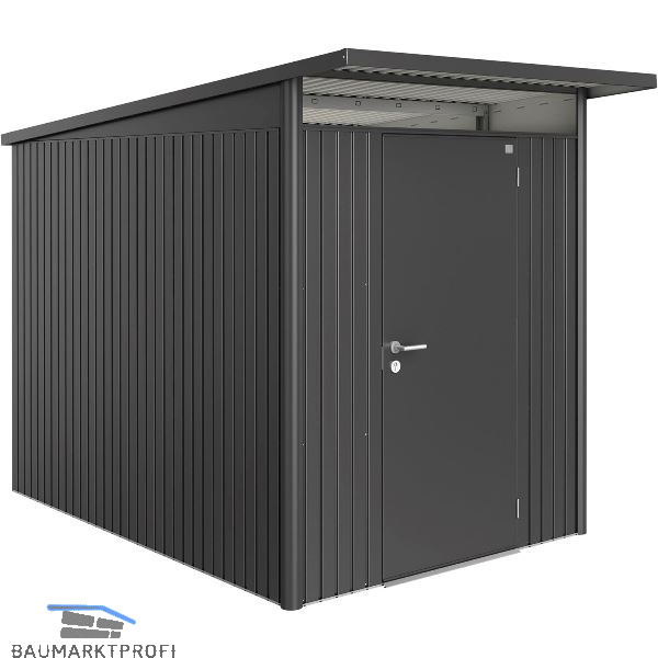 Trendiges Pultdach mit Acrylglasoberlichte und Dachvorsprung. Doppelte Stahl-Blechstärke gegenüber Billiganbietern. Diebstahlsicher und regenwasserdicht. Lebenslange Wartungsfreiheit - 20 Jahre Garantie!