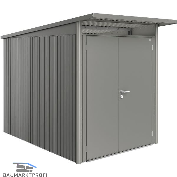 Trendiges Pultdach mit Acrylglasoberlichte und Dachvorsprung. Doppelte Stahl-Blechstärke gegenüber Billiganbietern. Diebstahlsicher und regenwasserdicht. Lebenslange Wartungsfreiheit - 20 Jahre Garantie!