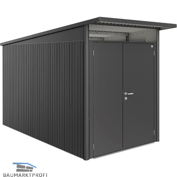 Trendiges Pultdach mit Acrylglasoberlichte und Dachvorsprung. Doppelte Stahl-Blechstärke gegenüber Billiganbietern. Diebstahlsicher und regenwasserdicht. Lebenslange Wartungsfreiheit - 20 Jahre Garantie!