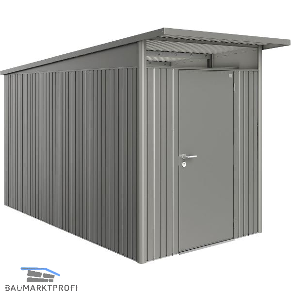 Trendiges Pultdach mit Acrylglasoberlichte und Dachvorsprung. Doppelte Stahl-Blechstärke gegenüber Billiganbietern. Diebstahlsicher und regenwasserdicht. Lebenslange Wartungsfreiheit - 20 Jahre Garantie!