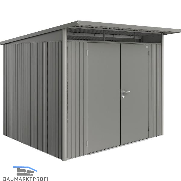 Trendiges Pultdach mit Acrylglasoberlichte und Dachvorsprung. Doppelte Stahl-Blechstärke gegenüber Billiganbietern. Diebstahlsicher und regenwasserdicht. Lebenslange Wartungsfreiheit - 20 Jahre Garantie!