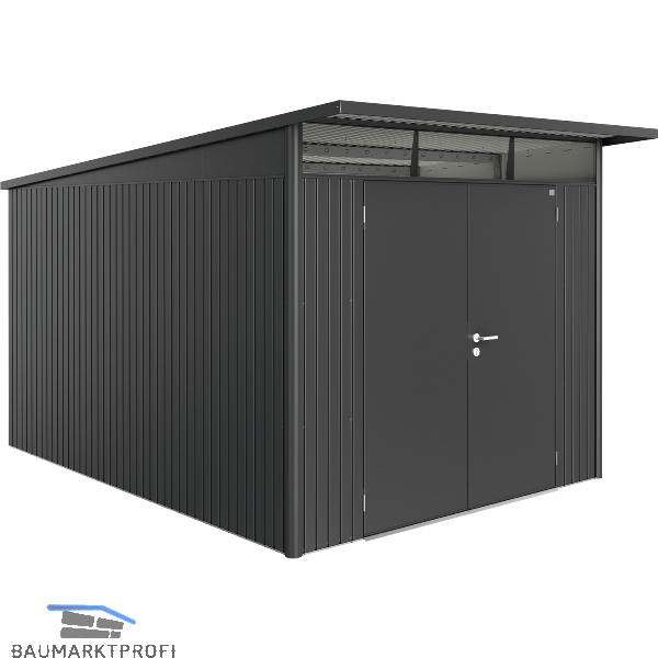 Trendiges Pultdach mit Acrylglasoberlichte und Dachvorsprung. Doppelte Stahl-Blechstärke gegenüber Billiganbietern. Diebstahlsicher und regenwasserdicht. Lebenslange Wartungsfreiheit - 20 Jahre Garantie!