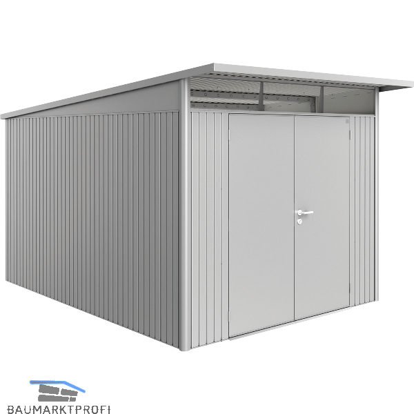 Trendiges Pultdach mit Acrylglasoberlichte und Dachvorsprung. Doppelte Stahl-Blechstärke gegenüber Billiganbietern. Diebstahlsicher und regenwasserdicht. Lebenslange Wartungsfreiheit - 20 Jahre Garantie!