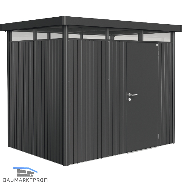 Modernes Flachdach mit Acrylglas-Lichtband für einen optimalen Lichteinfall. Doppelte Stahl-Blechstärke gegenüber Billiganbietern. Seitendach optional erhältlich. Lebenslange Wartungsfreiheit - 20 Jahre Garantie!