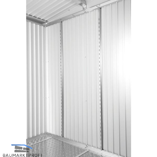 Regalsteher aus Hut-Profil mit Schlitzen zum Einhängen der Regalböden, Böden beliebig positionierbar, feuerverzinkt.