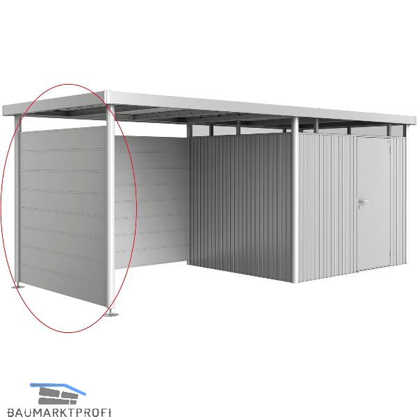 Wahlweise werden eine Rückwand und/oder eine Seitenwand am Seitendach des Gerätehauses HighLine (ab Gr. H2) angebracht. Sie sind in den Farbe des Hauses erhältlich.