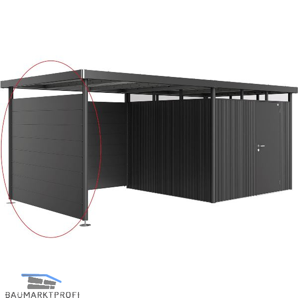 Wahlweise werden eine Rückwand und/oder eine Seitenwand am Seitendach des Gerätehauses HighLine (ab Gr. H2) angebracht. Sie sind in den Farbe des Hauses erhältlich.
