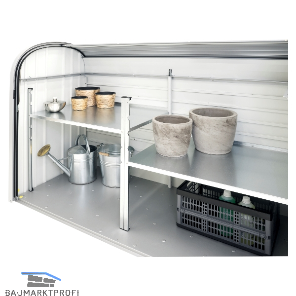 Passend für StoreMax Gr. 160. 2-teiliger, feuerverzinkter Stahlboden mit Regalstützen. Mit dem Zwischenboden können Sie den Platz verdoppeln, und obendrein für mehr Ordnung sorgen. Auch als 2-teiliges Regal verwendbar. Nachträglich einfach einzubauen.