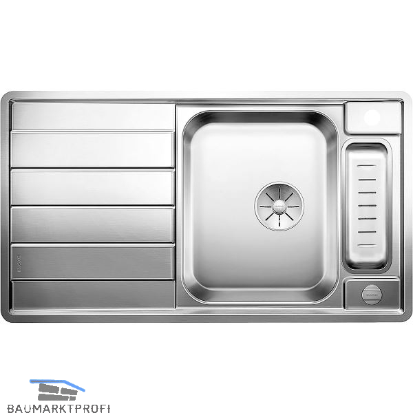 inkl. InFino® Drehknopf-Siebkorbüberlaufventil 3 1/2'', 1 1/2" InFino®-Siebkorbüberlaufventil, 2 Bohrlöcher, inkl. gelochter Edelstahleinsatz, inkl. Glas Schneidbrett