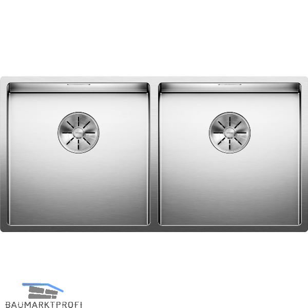 Doppelbecken als in sich geschlossene Funktionsfläche, die nicht durch einen Granit-Steg getrennt wird. Nur ein Ausschnitt in der Arbeitsplatte notwendig