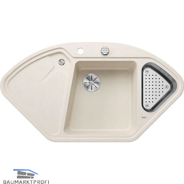 Marke: Blanco Type: Delta II Lieferanten-Nr.: 527055 Ausführung: Eckspüle Material: Granit Farbe: Softweiß Tropfteil: links Einbauvariante: Einbau Unterbau ab (mm): 900 x 900 Außenmaß (mm): 1057 x 575 Beckengröße (mm): 425 x 427 x 183 und 203 x 287 x 120