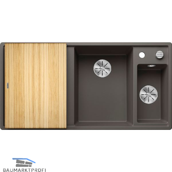 inkl. InFino® Drehknopf-Siebkorbüberlaufventil 3 1/2'', 1 Bohrloch durchgeschlagen, inkl. gelochte Edelstahlschale, inkl. Esche-Compound-Brückenschneidbrett