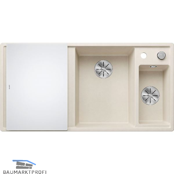 BLANCO Einbauspüle Axia III 6 S mit Glas Schneidbrett TT links Softweiß