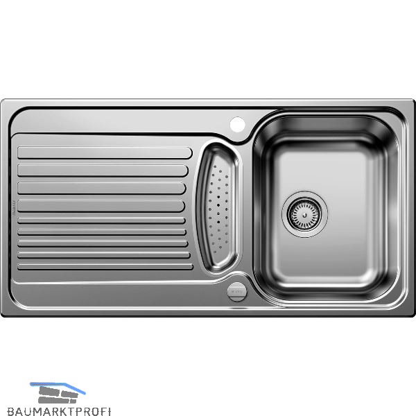 Marke: Blanco Type: Tipo 5 S Lieferanten-Nr.: 526336 Ausführung: Becken mit Restebecken und Tropftasse Material: Edelstahl Oberfläche: Naturfinish Tropfteil: reversibel Einbauvariante: Einbau Unterbau ab (mm): 500 Außenmaß (mm): 950 x 500 Beckengröße (mm): 330 x 420 x 165 und 35 x 300 x 50