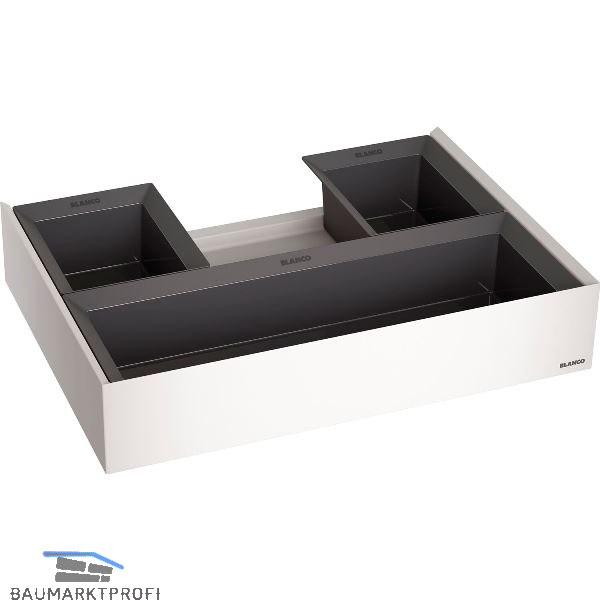 - Behälter sind individuell einsetzbar und können je nach Position der Ablaufgarnitur verschoben werden.