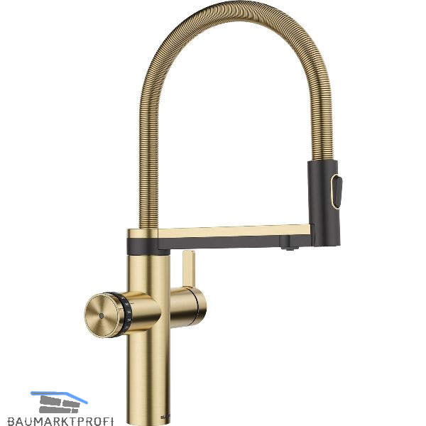 6-in-1 Semi Profi-Armatur: kaltes, warmes, kochend heiß, sowie gefiltertes, gekühltes, veredeltes Trinkwasser still, Medium und prickelnd.